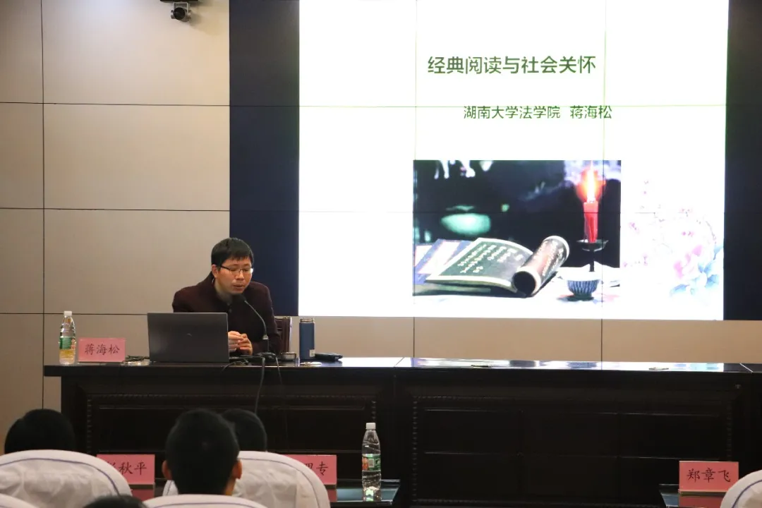 副院长、“全国七五普法先进个人”获得者蒋海松老师作题为“经典阅读与社会关怀”的讲座,91论坛