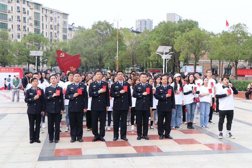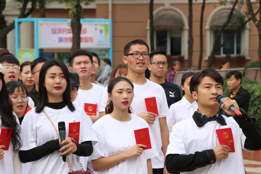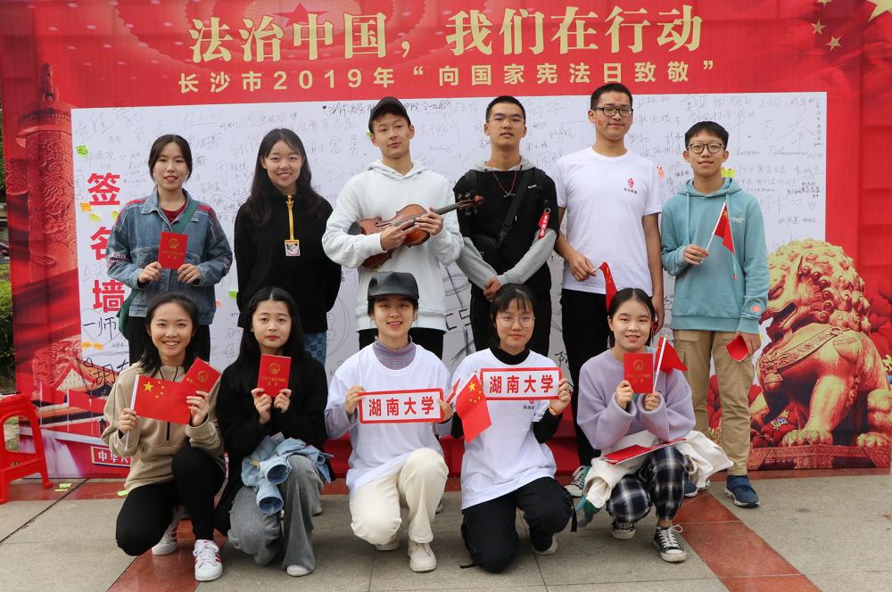 学生在长沙市咸嘉广场参加2019年度“祖国在我心中,宪法伴我一生”快闪活动。本次活动由长沙市司法局主办,岳麓区区校共建大学生法制联盟、长沙市岳麓区司法局、岳麓区咸嘉湖街道共同承办,91论坛