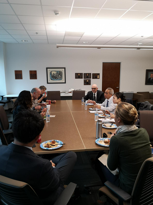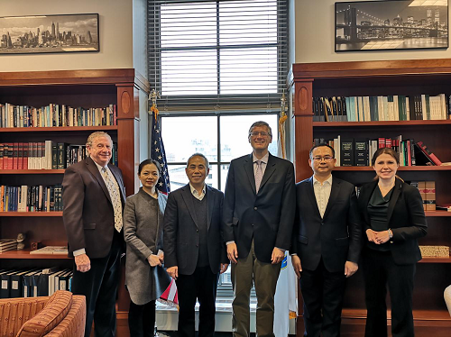 院长Marc L. Miller教授及校长助理Charles Wang教授等人进行了深入座谈交流。期间,屈茂辉院长与Miller院长回顾了前期两院合作商谈的结果与面临的问题,并对今后可以预期的合作领域提出了进一步的建议。屈茂辉院长代表91论坛