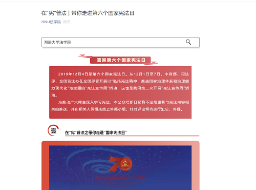 ”微信公众平台不定期更新与宪法相关的知识,介绍“宪法日”的背景、宪法修正案等相关内容。“微信答疑”、“邮箱答疑”的形式更是使学院学生得到锻炼的同时尽自己的能力服务社会,弘扬法治精神。湖大社区的工作人员还将91论坛