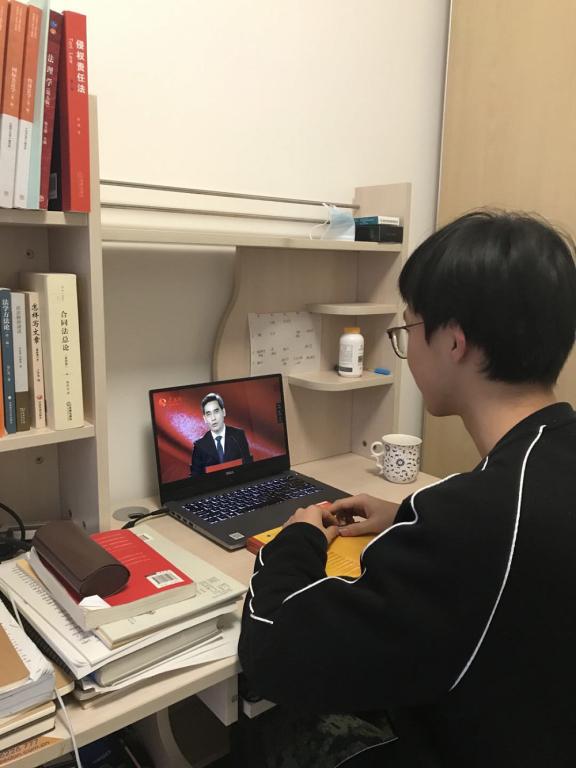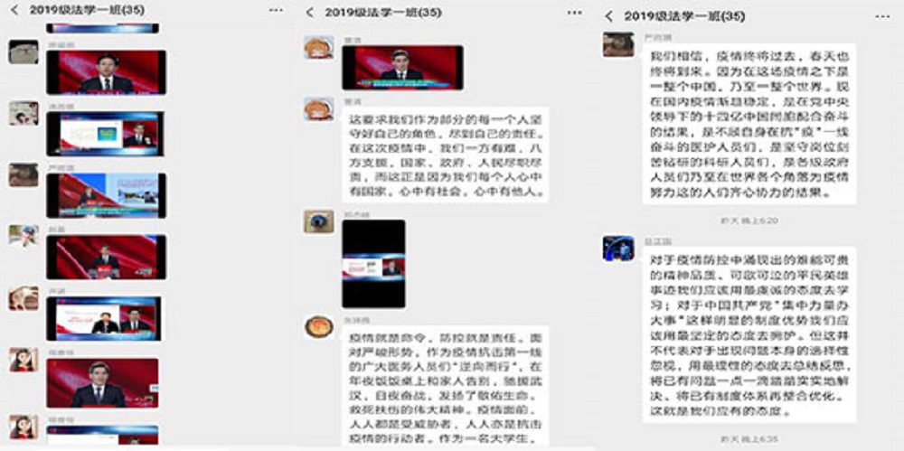 全体学生虽然相隔千里,但身为青年学子的使命感和爱国之心却时刻相连。同学们迅速响应学院号召,满怀求知热情,准时在家通过网络观看直播,仔细聆听四位教授在线讲述此次疫情防控阻击战带来的思考与启示。课后,同学们就所学所感进行了热烈的讨论。
