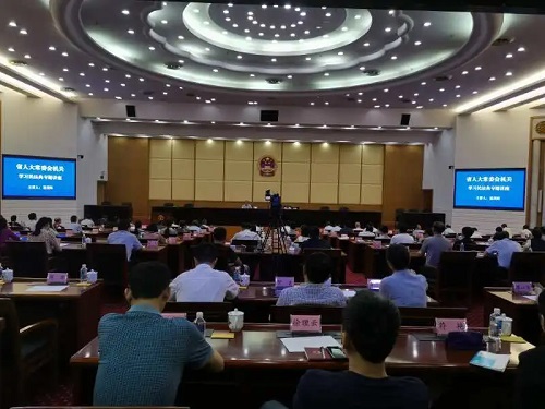 7月9日上午,湖南省人大常委会党组、机关党组、各专门委员会分党组理论学习中心组在省人大常委会机关会议中心开展2020年第六次集体学习。