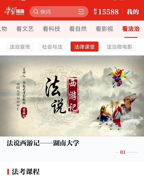 自主建设成功的首门mooc 慕课(大规模开放在线课程)《法说西游记》近日成功上线“学习强国”平台。