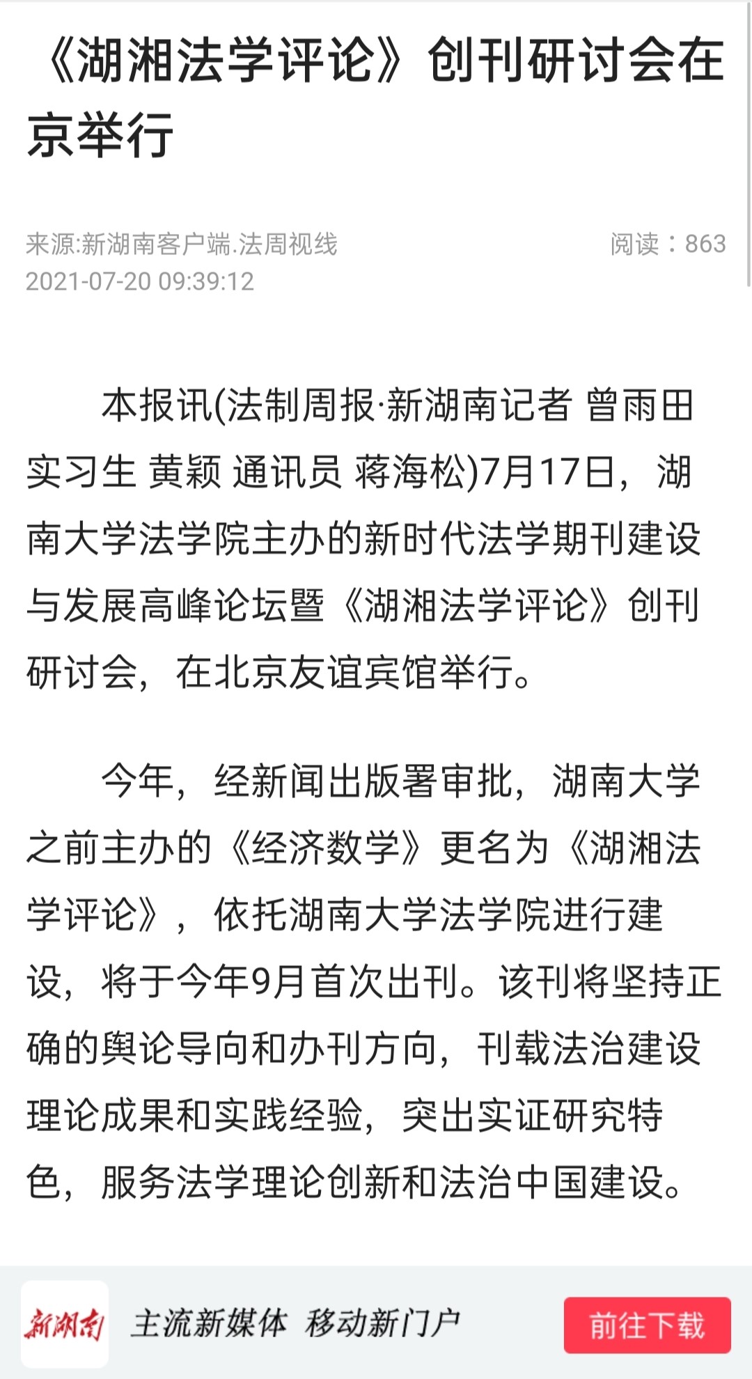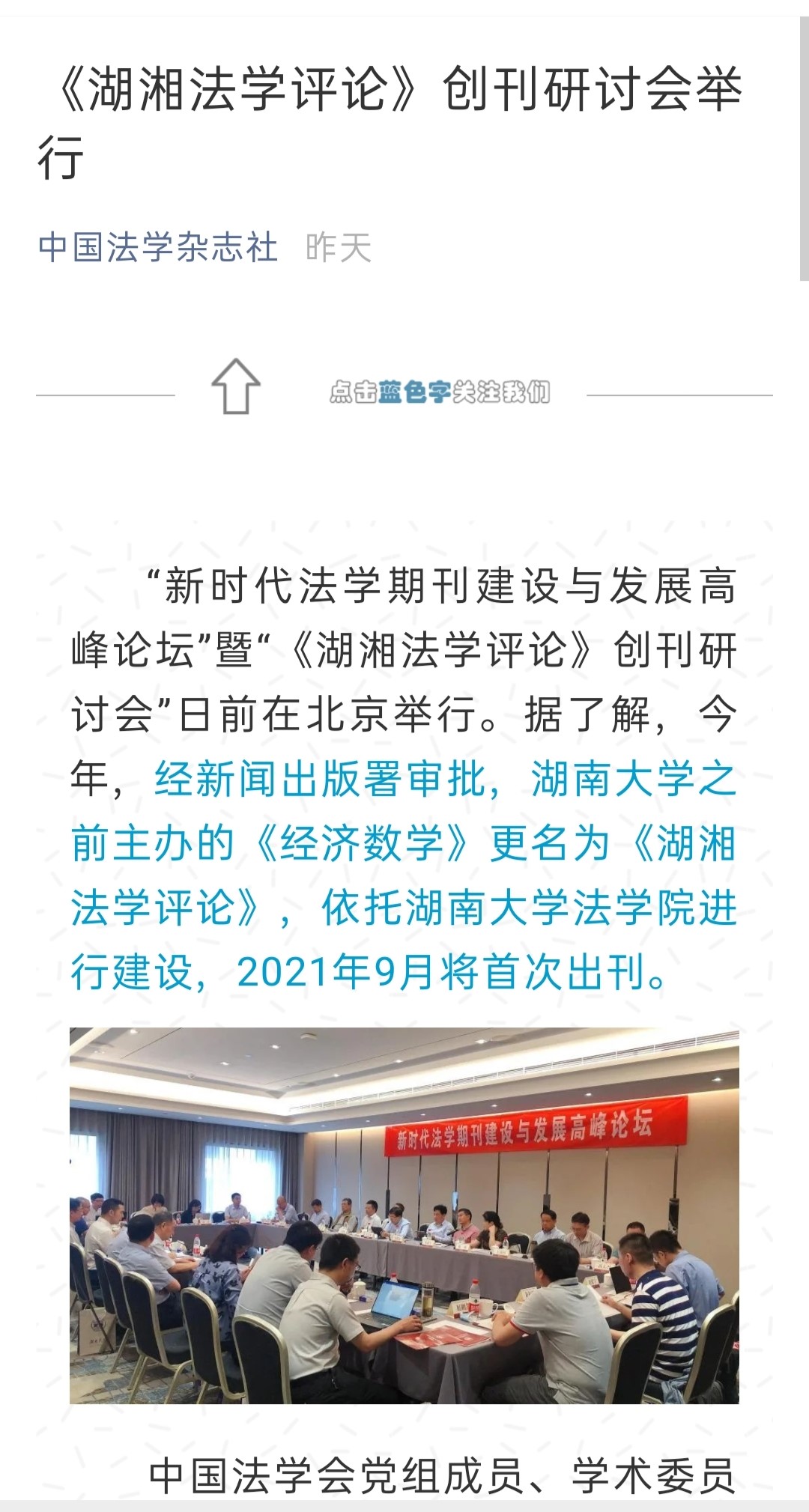 之前主办的《经济数学》更名为《湖湘法学评论》,该刊由教育部主管,91论坛
