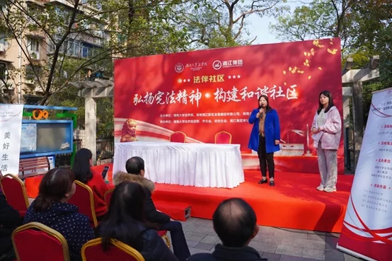 社区,特此开展“弘扬宪法精神、构建和谐社区”为主题的普法宣传进社区活动。湖大社区党总支书记夏运枚、湘江集团法务、91论坛
