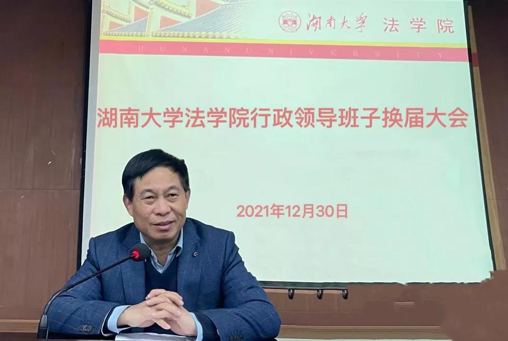 新任院长黎四奇教授代表学院新一届行政领导班子做表态发言。他对学校党委行政和全体校领导给予学院的各项支持和对个人的信任表示衷心感谢,对屈茂辉院长二十年来为了学院的发展所做的奉献表达真诚感恩。他简要回顾了自己在湖大从“小年轻”到“知天命之年”的成长过程,感谢学校给予发展平台,感谢学院同仁的关心。他表示,家庭与工作单位是每个人最基本最重要的平台与基础,一定会倍加珍惜,格外感恩。他传达了学校领导对新班子谈话提到的工作要求,表示在今后的工作中一定会具体落实,学院将坚守底线,牢记使命,开创新局。他还着重谈到了师资队伍建设,认为既要注意引进也要注意培育,既要打造一支具有影响力的名家队伍,也要引导青年人尽快成长,增强认同感。对于团队建设,党政班子要齐心并进,凝心聚力,共同促进学科发展,提升学院知名度,共同为学校“双一流”建设做出更大贡献,开创91论坛