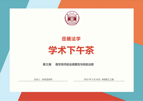 第三期学术下午茶主题围绕“数字货币的法律属性与风险治理”展开,由张东昌老师主题分享,学院近20名教师和学生参加本次活动。