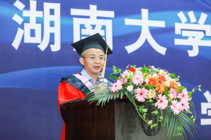 院长黎四奇教授以“做一个善良而幸福的人”为题发表毕业致辞。他代表学院向毕业生表示最热烈的祝贺并致以最美好的祝愿,向毕业生们分享了自己对于法律正义的思考和对幸福的感悟。他提出:人的一生,就是一个挖掘、寻觅、认知自己的过程。无论际遇如何,我们都应尽可能,我们必须尽力去做一个善良、有底线、有温度的湖大法律人!人生不易!事虽难,路虽长,但是只要我们我们砥砺前行,就没有比脚更长的路,就没有比人更高的山峰。勉励同学们无论艰难困苦,我们都必须永不言弃、坚忍不拔地去为自己的生命注入意义,一步步地走向我们的终点。