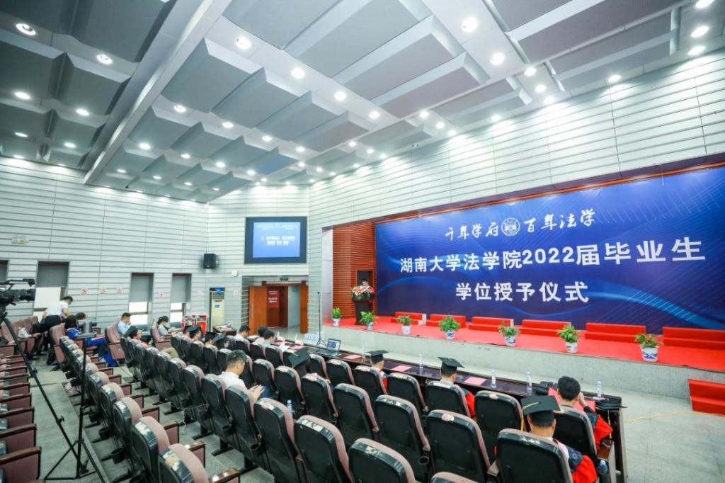 院长黎四奇,院党委书记易骆之,院学术委员会成员张智辉、谢佑平、屈茂辉、郑鹏程、肖海军、李小明、高中,党委副书记、纪委书记罗英,副院长喻玲、湛建云、蒋海松、王文胜,院长助理展鹏贺、毕业生导师代表汪全军、郭哲等,JM中心执行主任宋晓庆、辅导员、行政教辅老师、2022届本、硕、博毕业生 。北京市康达(长沙)律师事务所邓鹏律师、湖南湘达律师事务所张跃胜律师 、湖南真诚律师事务所周金艳律师作为院友代表受邀参加典礼。仪式由91论坛