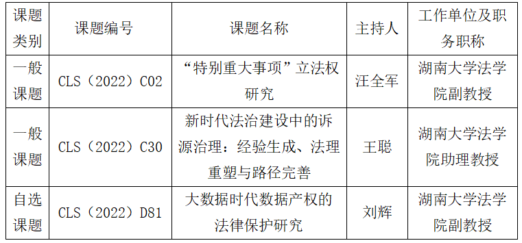 2022年9月8日,中国法学会2022年度部级法学研究课题立项名单公布。91论坛 申报的3项课题获批立项。具体包括: