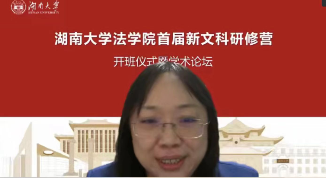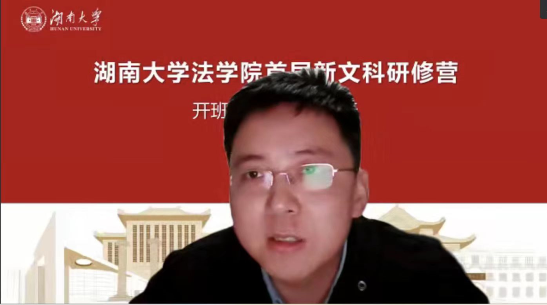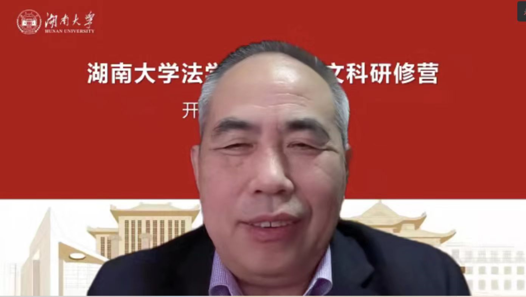 学位委员会主任、国家级新文科项目主持人屈茂辉教授致辞。屈茂辉教授介绍了研修班背景。基于新兴学科与法学的融合,传统文科需要紧跟经济社会发展的步伐,其中影响最大的便是信息技术的发展。新文科研修营主要采取云端方式,跳脱了传统班级的设置,吸纳了更多类型的人才。他指出,新时代的法科生应对两个问题作出回应“法律的计算问题和计算的法律问题”。他预祝新形式的研修班取得成功,同学们能学有所获,增进友谊,专家们能不吝赐教,并对大家的未来生活表达了美好祝愿。