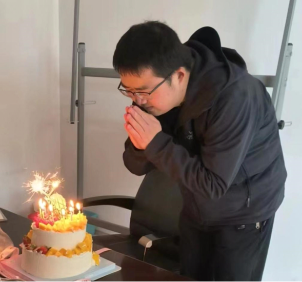 (备赛期间,队员们为教练龙博老师庆祝生日)