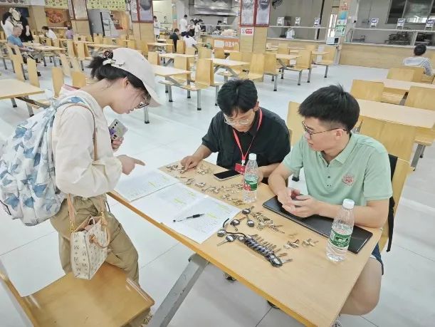 新生在迎新点领取宿舍钥匙