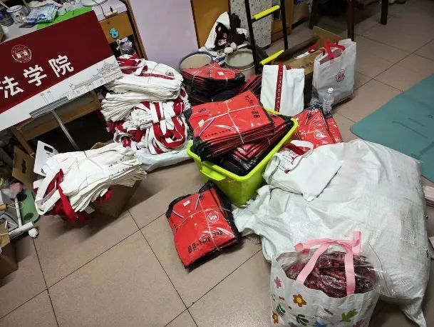 深夜志愿者们忙于筹备、清点物资