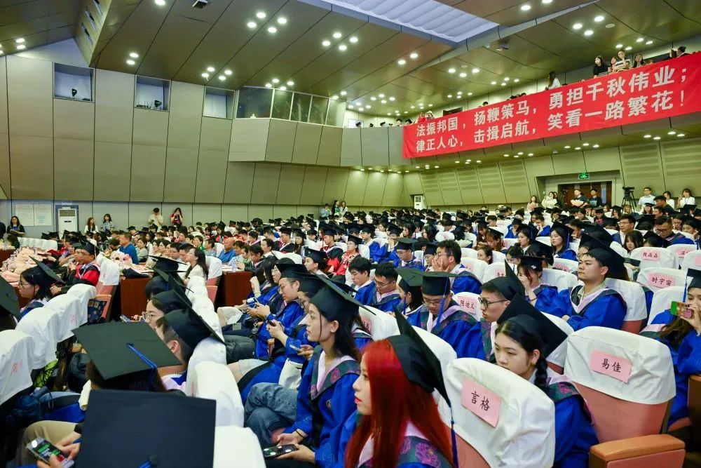 2024年学位授予决定》,对11位法学博士、262位硕士研究生及166位本科生作出授予学位的决定。随后,屈茂辉、黎四奇、谢佑平、肖海军、郑鹏程、高中老师为全体毕业生一一正冠拨穗、颁发证书并合影留念。