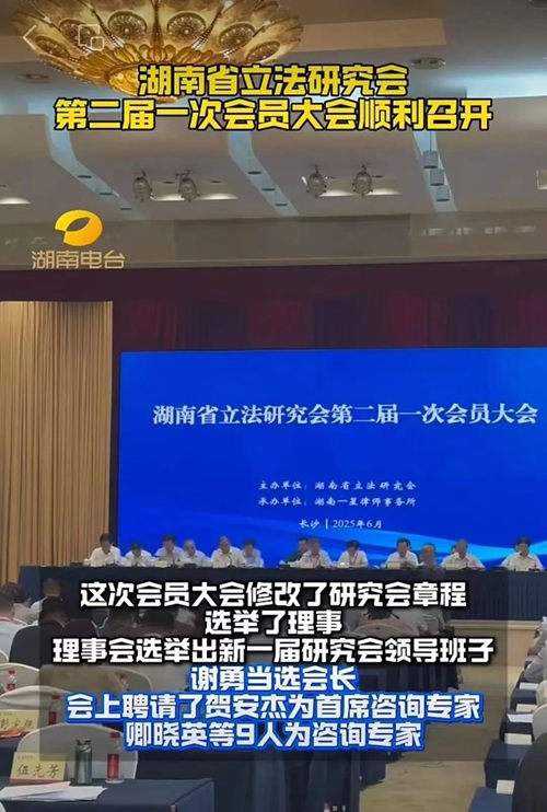 2025年6月21日,湖南省立法研究会第二届一次会员大会在湖南宾馆举行。本次大会由湖南省立法研究会主办,湖南一星律师事务所承办,来自省、市(州)、县(市、区)人大常委会、政府有关部门、高校、律所,企业和其他方面的研究会会员及专家等150多人齐聚一堂,共商湖南地方立法研究深入开展大计。