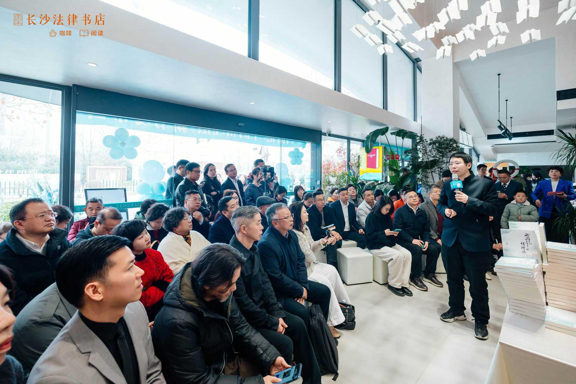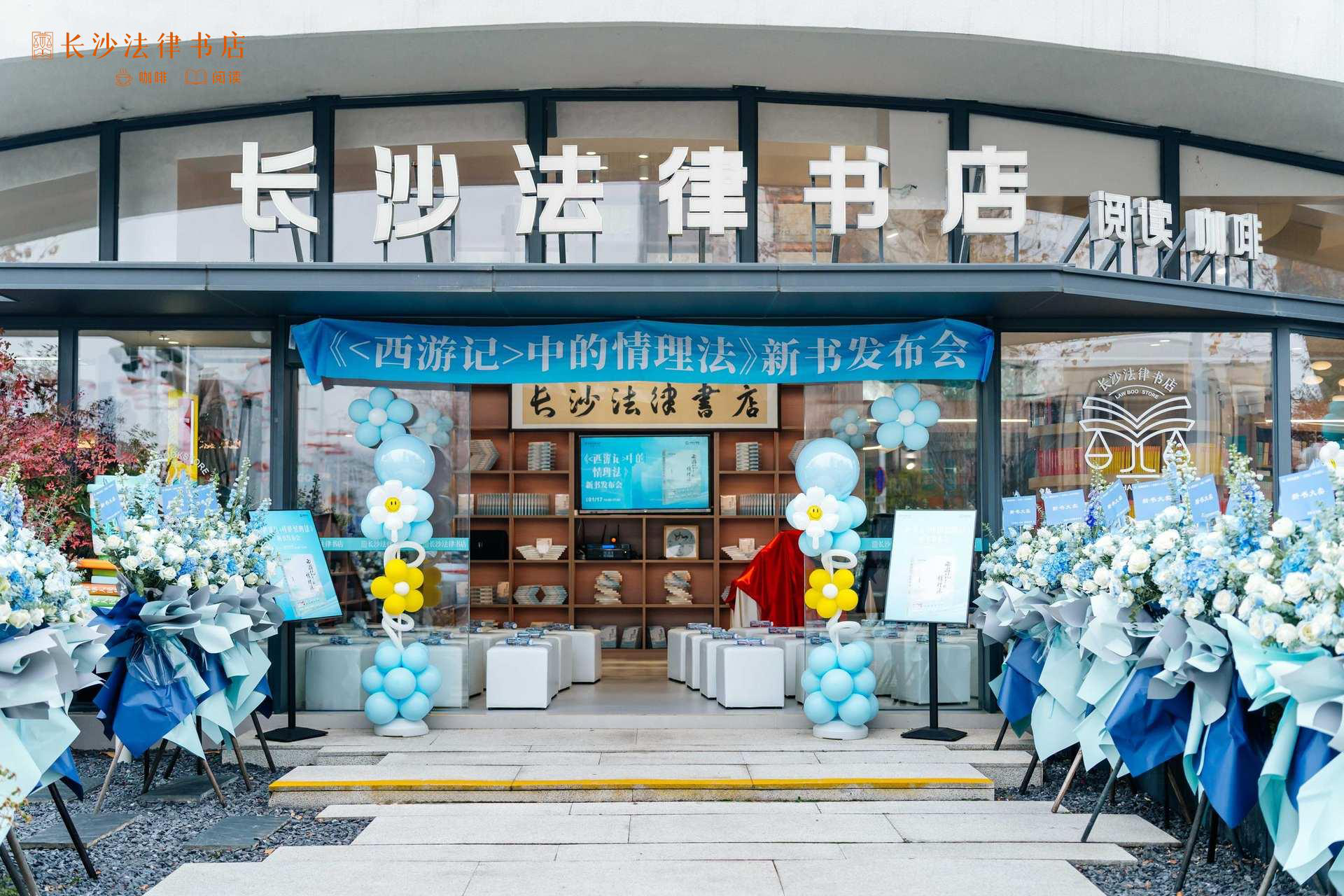 承办方长沙法律书店被誉为中国最美法律书店之一。现场典雅美观,新书创意摆放,呈现梦幻之感。诸多律师事务所为活动赠送了祝贺花篮。