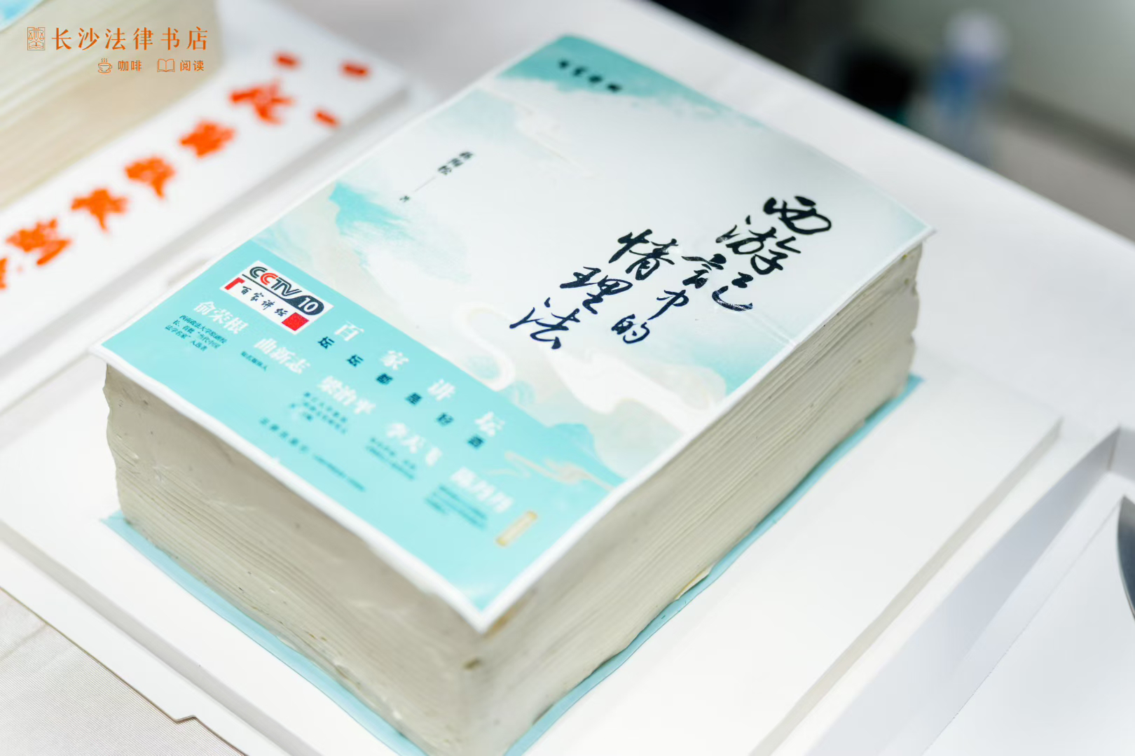 根据《〈西游记〉中的情理法》封面制作的蛋糕富有创意,夏新华、孟泽、李含英、蒋海松等嘉宾共同切开蛋糕,寓意“开卷有益”。