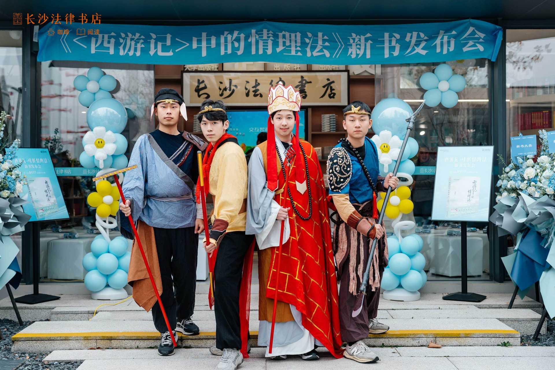李沙、宣知含、李文星、夏英桐同学表演了“《西游记》cosplay”,生动再现了取经团队的法律故事。现场观众争相与取经团队合影留念。