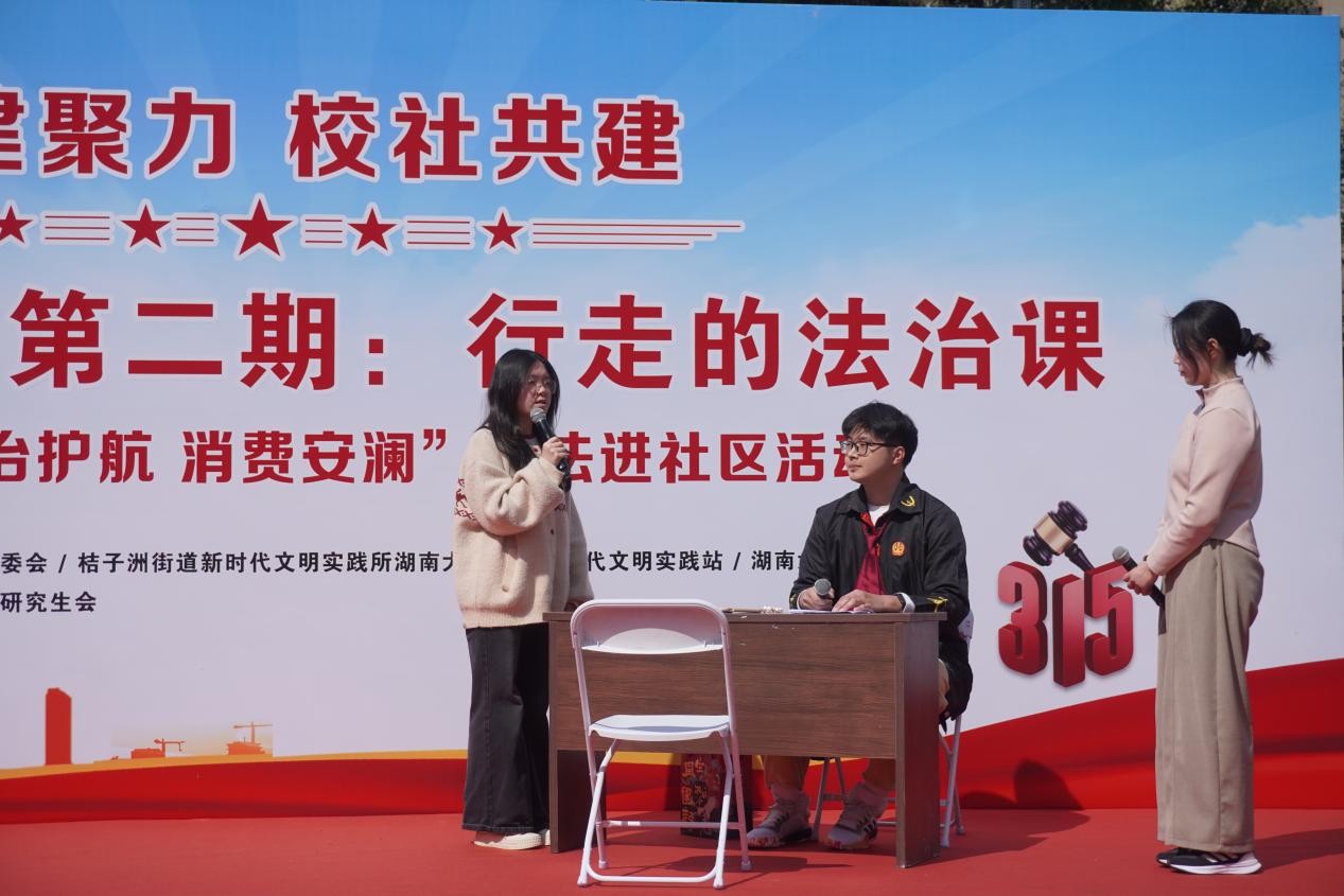 的同学们化身“演员”,用情景短剧的形式,还原了消费者在维权路上可能遭遇的种种困境:从买到假冒伪劣商品后商家推诿扯皮,到网络购物退款无门,再到老年群体购买保健品时被虚假宣传误导……一幕幕贴近生活的场景,让在场居民感同身受。在剧情推进中,同学们清晰演示了完整的依法维权路径:与商家协商、协商未果后拨打12315热线投诉、乃至直接向法院提起诉讼。