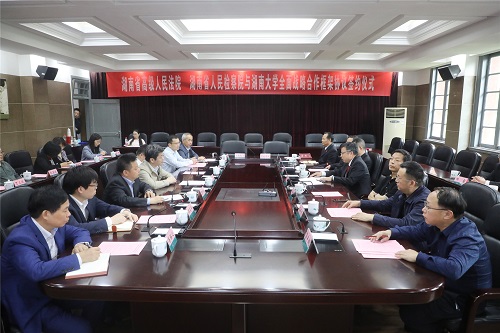 义不容辞的责任和使命。希望通过与湖南省高级人民法院和湖南省人民检察院的全面战略合作,深化高等法学教育教学改革,把法治实践的教学资源、新鲜经验和生动案例带进课堂教学,推动法学学科建设和学术发展,培养造就一大批忠于党、忠于国家、忠于人民、忠于法律的高素质法治人才。