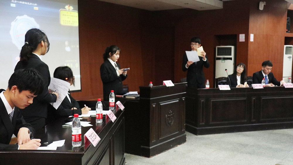 模拟法庭精彩上演。决赛包括冠军争夺赛与季军争夺赛两个部分。