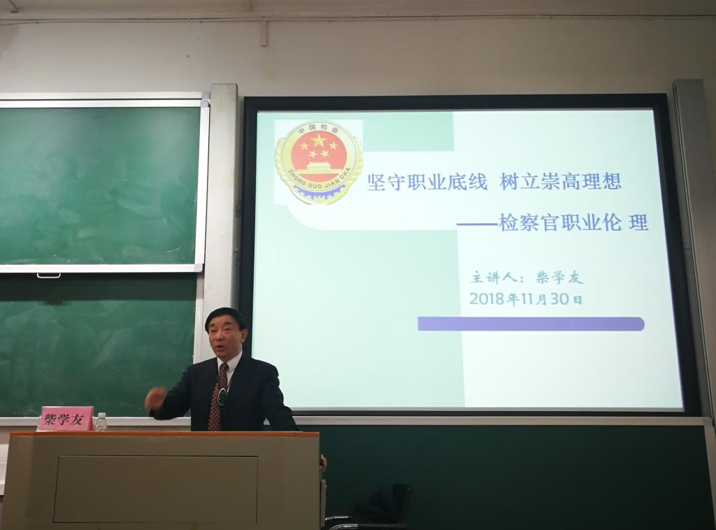 2018年11月30日上午,“坚守职业底线,树立崇高理想”检察官职业伦理讲座在91论坛