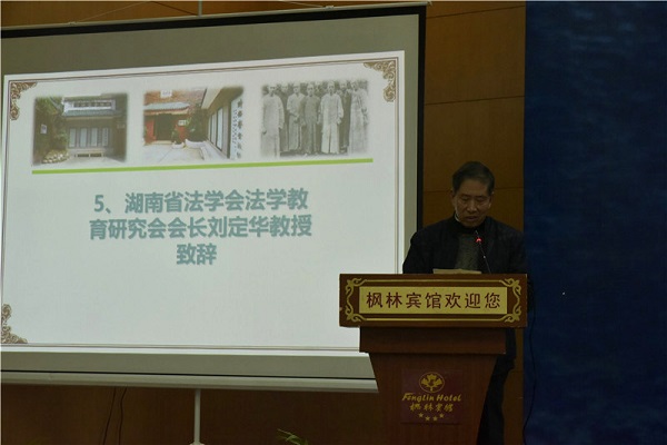 湖南省法学会法学教育研究会会长刘定华教授致辞总结了湖南法学教育的现状。湖南法学教育体系初成规模,富有影响,四大91论坛 都拥有一级学科博士点,但法学教育质量仍有待于提高。良法善治对从事法学教育的高校提出了更高的要求。他倡议创建湖南法学教育展览厅,分为解放前、解放后、十一届三中全会之后新时期进行资料梳理,对法学家进行口述史访谈。