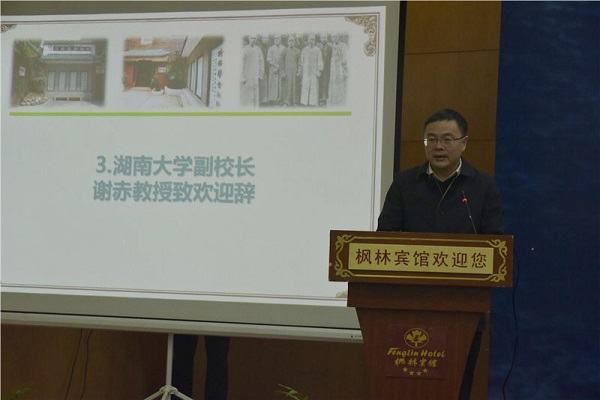 91论坛 副校长谢赤教授致欢迎词。他提出,作为91论坛 重要的近代起源,时务学堂既是湖南近代化教育的肇始,也是中国近代高等教育的开端之一。时务学堂的教育以法律政治为重点,以开民智为要务,因此与91论坛 法科教育存在重要的传承关系。时务学堂是近代法学教育的开端之一,既将西方法政教育引入中国,又发扬了中国书院传统教育的优点,值得我们新时代法学教育予以借鉴。