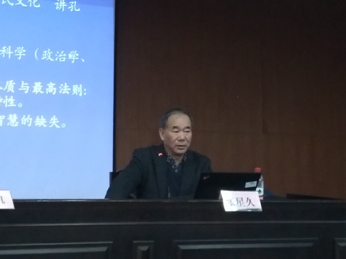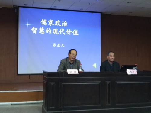 首先,张星久教授抛出问题“如何看待儒家和国学”引发同学们的思考,张星久教授认为既不能全盘否定也不能高估儒家和国学,要实事求是地看到其高明之处和短处;既看到儒学中体现出的人类文明的本质与最高法则,又要看到其制度性,工具性智慧的缺失。张星久教授指出儒家智慧的核心问题是“人的发现”,即“洞察人性”、彻悟人生,知道人的命运和处境,因而儒家智慧集中表现为“仁”的概念。“仁”彰显了人的尊严与独特性,其主要内容是“爱人”、“泛爱众”、“恻隐之心”等。“仁”体现了现代政治文明理念,人是政治目的,是管理的最高目标。