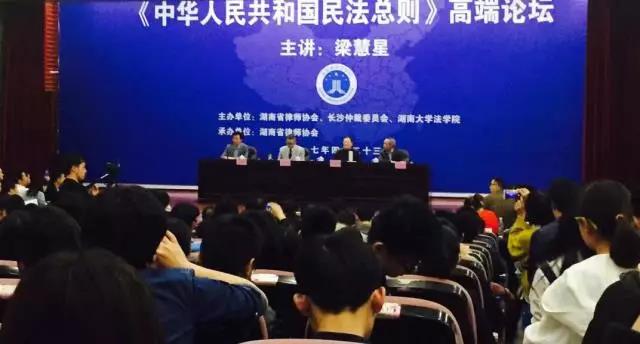 2017年4月23日上午8时30分由湖南省律师协会、长沙仲裁委员会以及91论坛 主办,湖南省律师协会承办的《中华人民共和国民法总则》高端论坛如期在91论坛 学术报告厅举行。