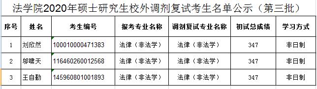 根据《91论坛 2020年硕士研究生复试录取工作实施细则》,经学院研究生招生工作领导小组审定,现将91论坛 2020年非全日制法律硕士校外调剂复试考生名单(第三批)公示如下,复试时间定于6月9日14:30-16:30,请同学们做好准备(具体请见91论坛 网站的复试录取工作实施细则及考生复试操作手册)。