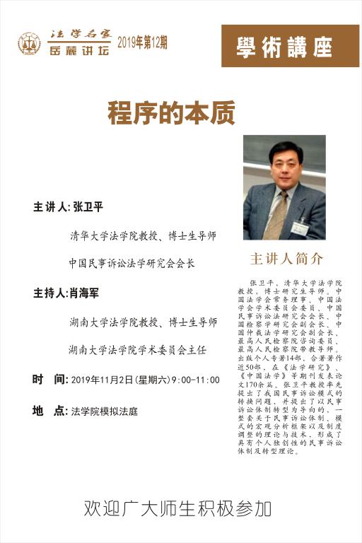 教授,博士研究生导师。中国法学会常务理事、中国法学会学术委员会委员、中国民事诉讼法研究会会长、中国检察学研究会副会长、中国仲裁法学研究会副会长、最高人民检察院咨询委员、最高人民检察院带教导师。出版个人专著14部,合著著作近50部,在《法学研究》、《中国法学》等期刊发表论文170余篇。张卫平教授率先提出了我国民事诉讼模式的转换问题,并提出了以民事诉讼体制转型为导向的,一整套关于民事诉讼体制、模式的宏观分析框架以及制度调整的理论与技术,形成了具有个人独创性的民事诉讼体制及转型理论。