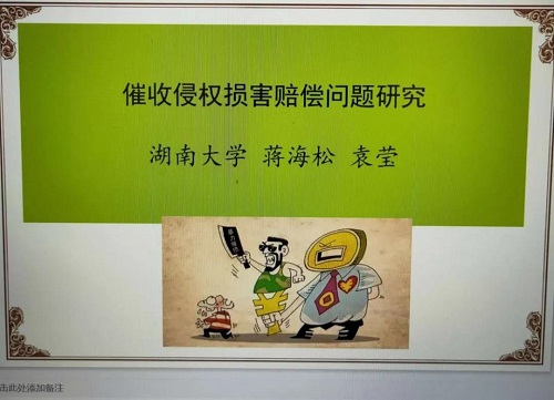 蒋海松老师做了题为《催收侵权损害赔偿问题研究》的报告。该报告由蒋老师和其指导的研究生袁莹共同完成。蒋海松提出,催收行业的本质是提供信用服务,是信用服务行业十大分支组成之一。催收机构在提供催收信用服务的过程中,由于催收员的操作不规范,可能会侵害到债务人的合法人身权利与财产权利,此类事件严重危及催收行业信誉,因此有必要对催收侵权的认定以及损害赔偿问题进行检视。催收侵权行为大致分为如下类型:暴力催收侵害生命权、身体权与健康权;侵害名誉权;侵害隐私权;侵害财产权等。催收侵权损害赔偿具有类型化特征,这几类归类相对较为清晰,而一般侵权所侵害的权利类型与范围十分广泛,侵权行为的发生是随机的。而催收侵权由催收业务活动而起,呈现类型化区分,因此可以通过各种措施进行有效预防。蒋老师还对催收侵权的归责主体与归责原则进行了探讨。