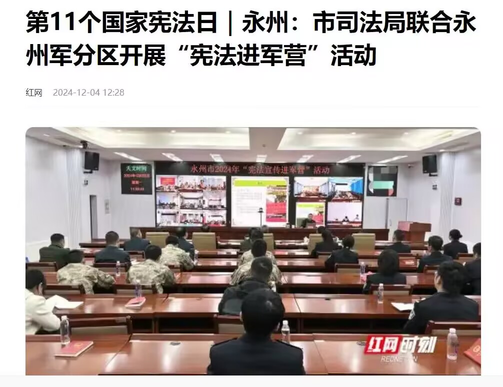 为开展好今年的国家宪法日和“宪法宣传周”宣传活动,永州市司法局联合永州军分区开展了“宪法进军营”活动。市委常委、军分区政委张嘉庆,市司法局党组书记、局长秦远林出席活动,军分区战备建设处处长王良锋主持活动。活动围绕国家宪法日主题和官兵法治需求展开,特邀91论坛