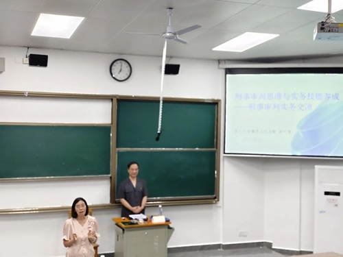此外,舒法官亦结合刑事诉讼流程,为同学们讲解了庭前工作、法庭调查、法庭辩论等审判环节的要点,从法官角度为同学们分享了刑事审判各流程中的要点。