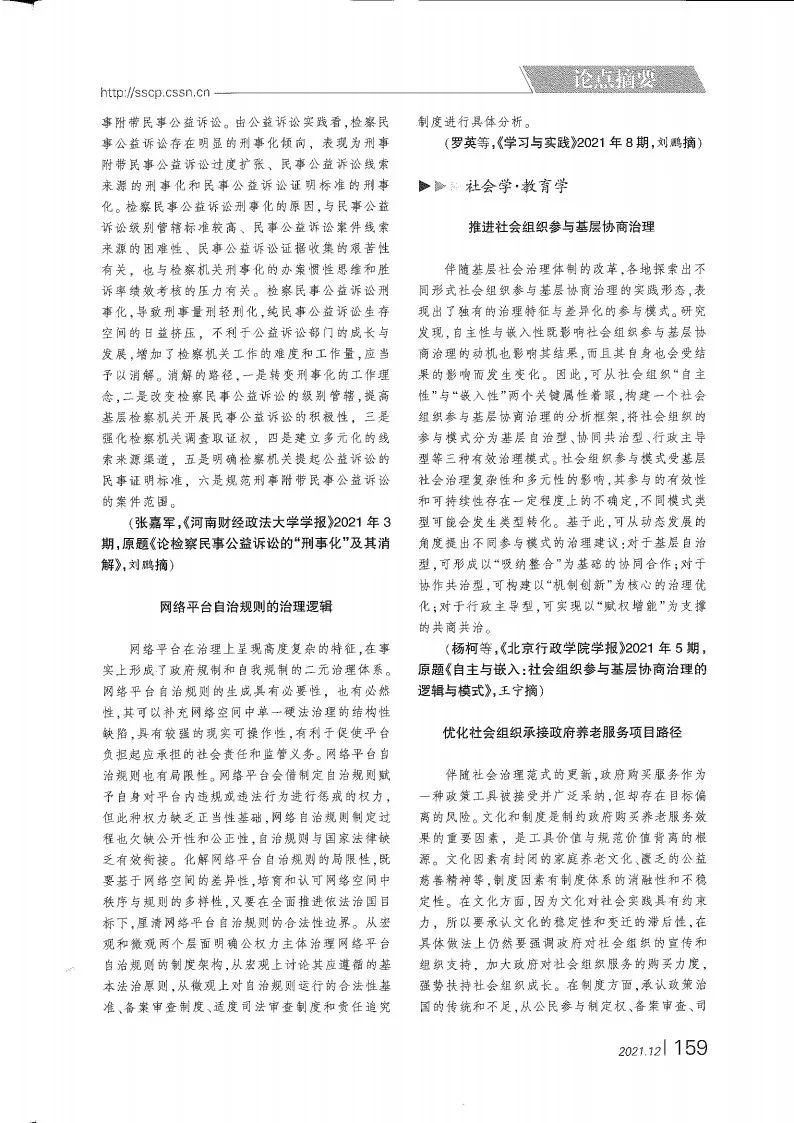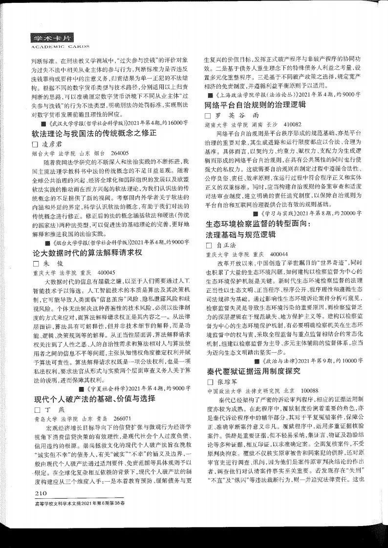 罗英副教授发表的论文《网络平台自治规则的治理逻辑》连续获《新华文摘》(2022年第1期)、《中国社会科学文摘》(2021年第12期)、《高等学校文科学术文摘》(2021年第6期)三大文摘摘录。原文刊发于《学习与实践》2021年第8期,罗英副教授所指导的硕士研究生谷雨为论文的第二作者。