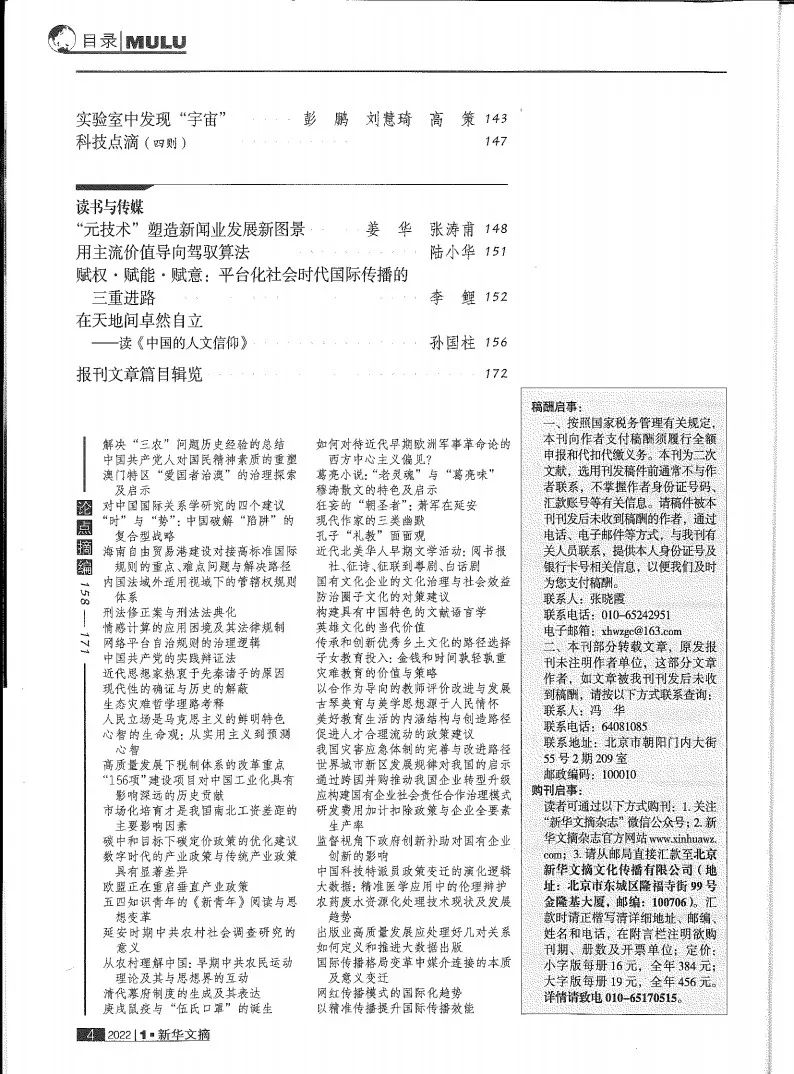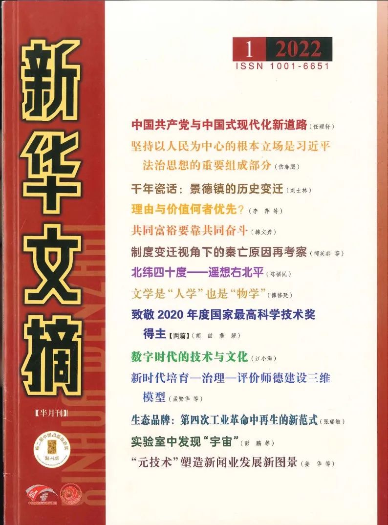 《新华文摘》《中国社会科学文摘》《高等学校文科学术文摘》是我国人文社科领域公认的三大文摘,是推荐人文社科领域重要学术成果的核心平台。