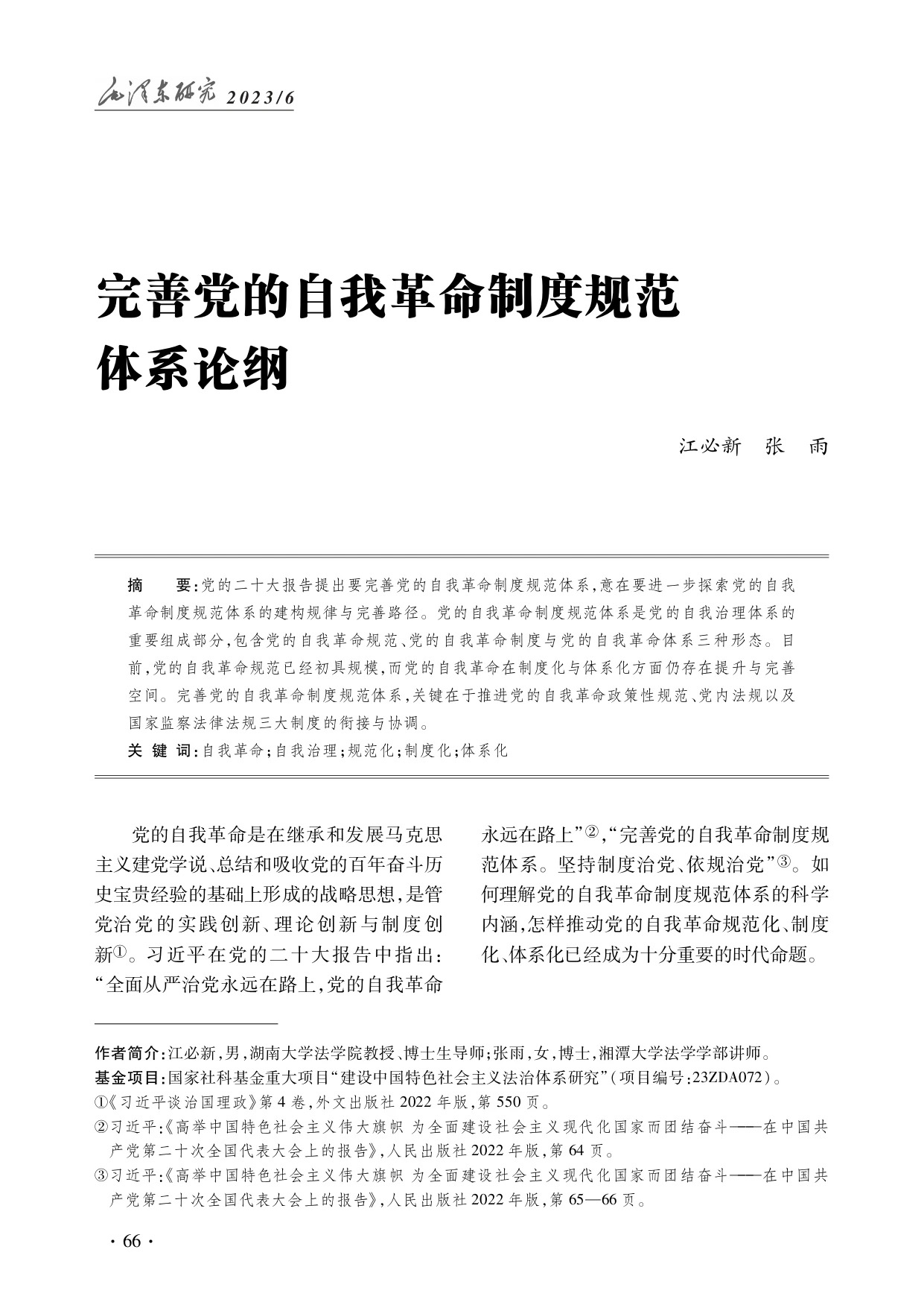 江必新、张雨:完善党的自我革命制度规范体系论纲
