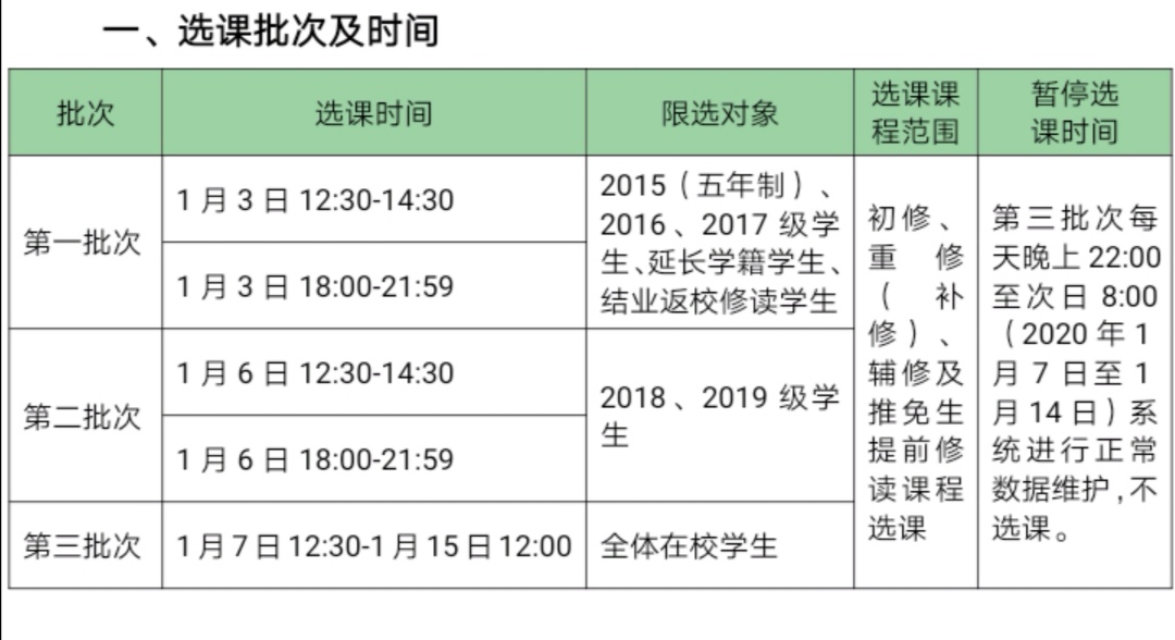 1、选课通知可见//jwc.forum-91.com/info/1022/7085.htm;2、请按照培养计划切实做好选课工作,避免错选或漏选等情况发生;3、本次选课仍然按照分批形式进行,具体安排详见选课通知;