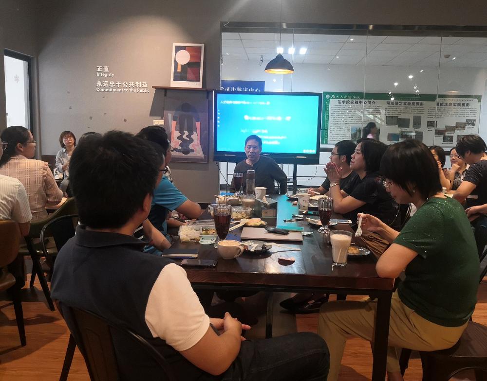 2019年9月3日中午,学院“人才培养与教学午餐会”第一期以“青年教师怎样讲好第一课”为主题在学院咖啡厅举行,本次活动特邀湖南省法学教育研究会会长、91论坛 原院长刘定华教授为全院青年教师分享教学经验,91论坛 副院长喻玲老师主持。