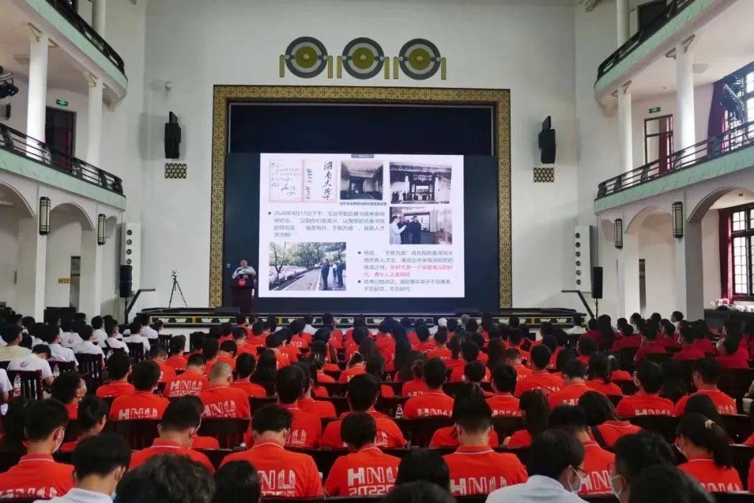 开放包容、海纳百川的治校理念,并勉励同学们学习岳麓书院的传统文化,以其人文精神为未来的学习生活打下基础,成为经世致用之才。