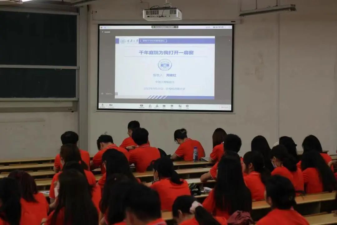 2022年9月20日,中国工程院院士,重庆大学弘深书院院长,中国工程院第八届主席团成员,兰州大学原校长、重庆大学弘深书院院长,中国工程院第八届主席团成员,兰州大学原校长、重庆大学原校长周绪红院士为同学们带来了一堂激励人心的讲座——《千年庭院为我打开一扇门》。
