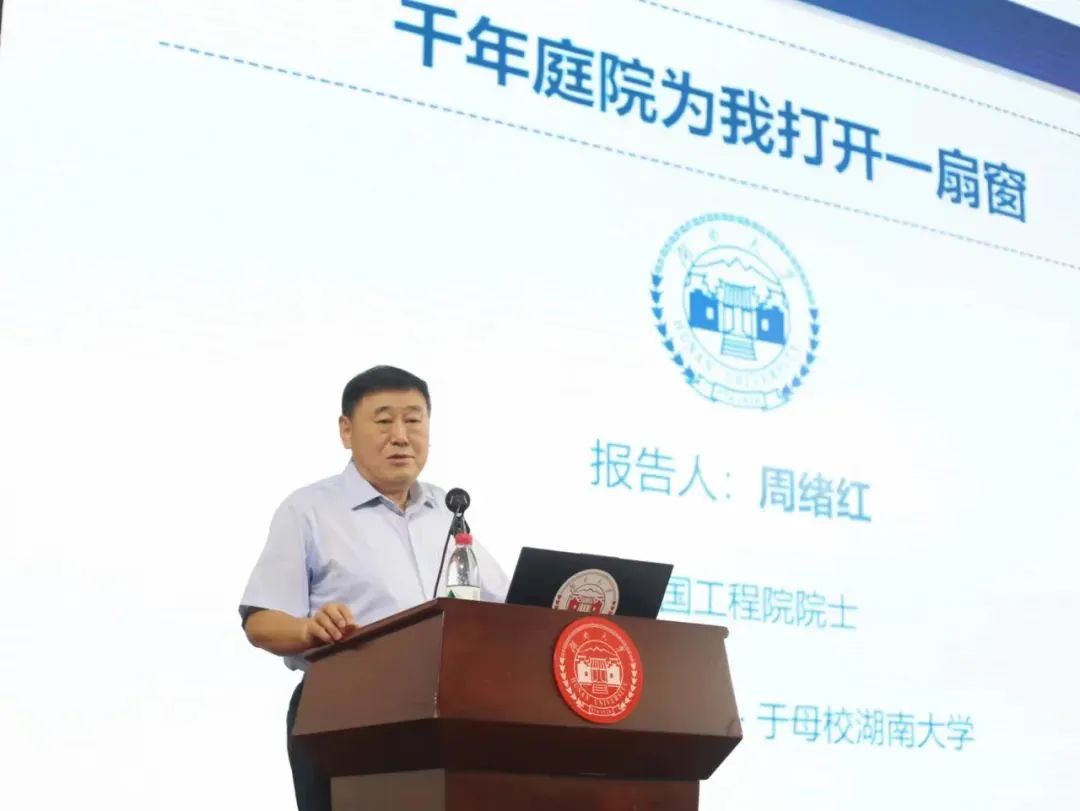 周绪红院士首先以岳麓书院的对联向同学们讲述书院精神。“合安利勉而为学,通天地人之谓才”,周院士强调“勉”、“励”二字,激励同学们将读书与治学融入人生,奋发自强、努力成才。“惟楚有才,于斯为盛”,岳麓书院人才辈出,传递湖湘文化,2020年习近平总书记在91论坛