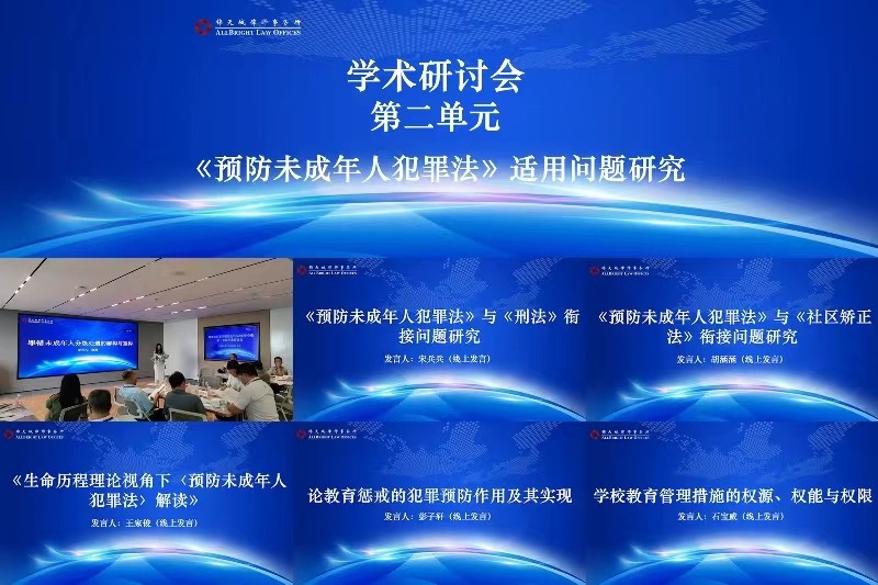 围绕第二个议题,六位发言人分别从《预防未成年人犯罪法》与其他部门法的衔接以及在实践中的具体应用等问题展开汇报,其中一人在线下会场汇报,另外五人采取线上方式汇报。