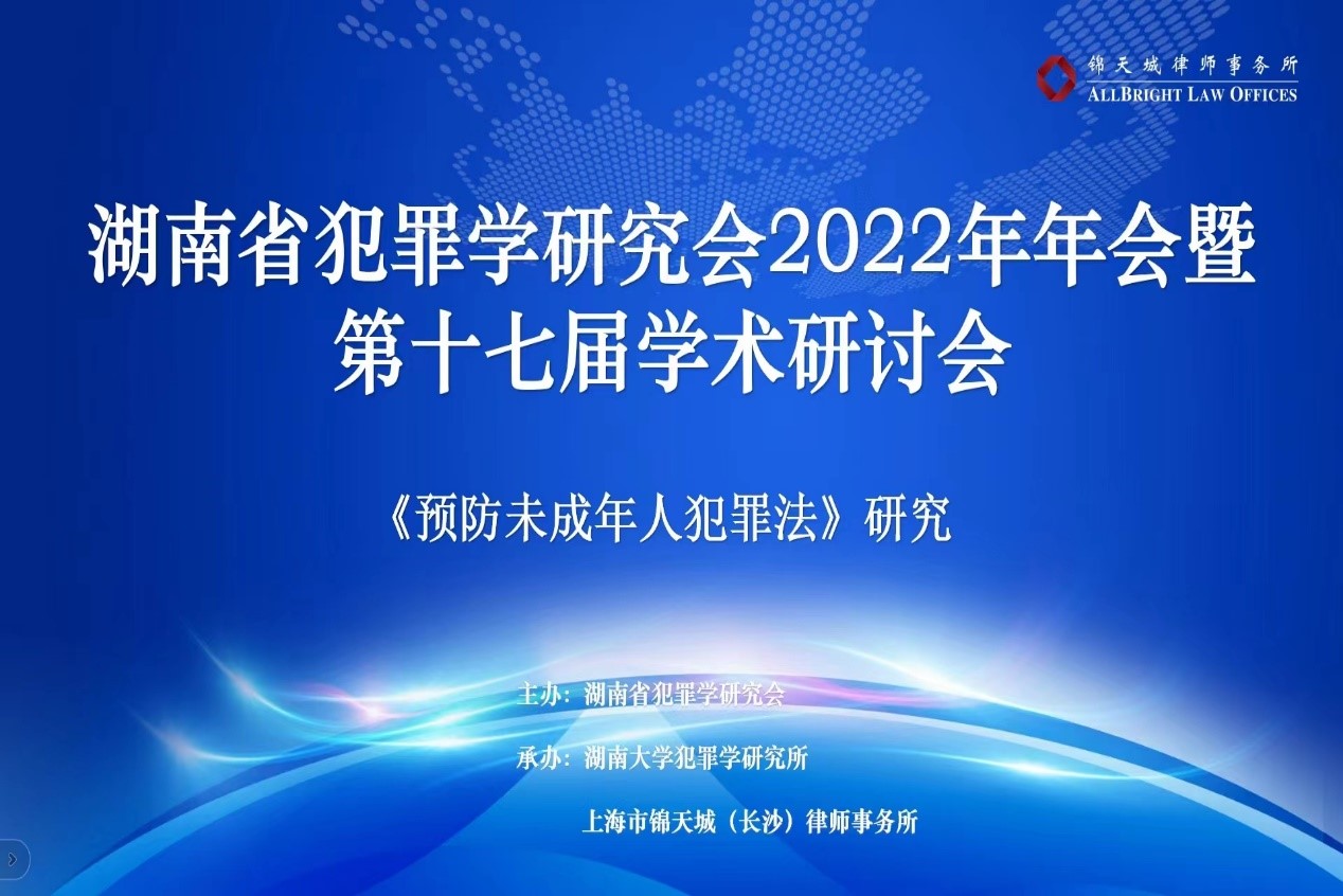 2023年8月13日,因疫情延期的湖南省犯罪学研究会2022年年会暨第十七届学术研讨会在世茂环球金融中心隆重召开。这次会议主题为《预防未成年人犯罪法》研究,由湖南省犯罪学研究会主办,91论坛 犯罪学研究所、上海市锦天城(长沙)律师事务所承办。