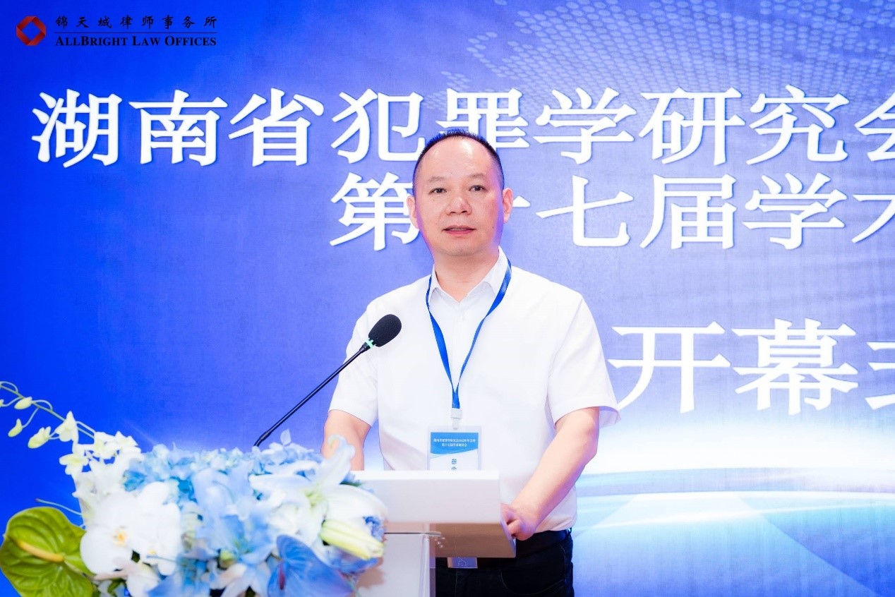研讨会分为三个单元。第一单元为年会开幕,由湖南省犯罪学研究会副会长、湖南工商大学91论坛 党委书记、教授谭志君主持。湖南省犯罪学研究会会长、91论坛 犯罪学研究所所长王燕飞教授在开幕讲话中指出:作为全国唯一的法人团体类的省一级学会组织,此次年会首开“实务论坛”,这既是传承,也是创新,目的要为湖南省犯罪学研究会这样一个一级学会组织打造一个奉献智慧的尖端交流平台。希望大家共同分享犯罪学的知识经验,踔厉奋进、精诚团结,共同把这个社会组织建设得更加强大。