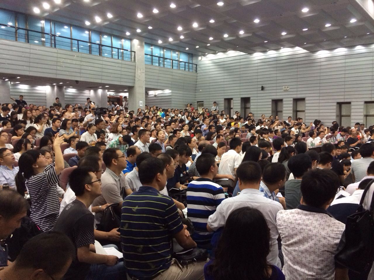报告厅场面热烈,许多听众甚至席地而坐,设在法学楼模拟法庭的同步录像分会场也是座无虚席。