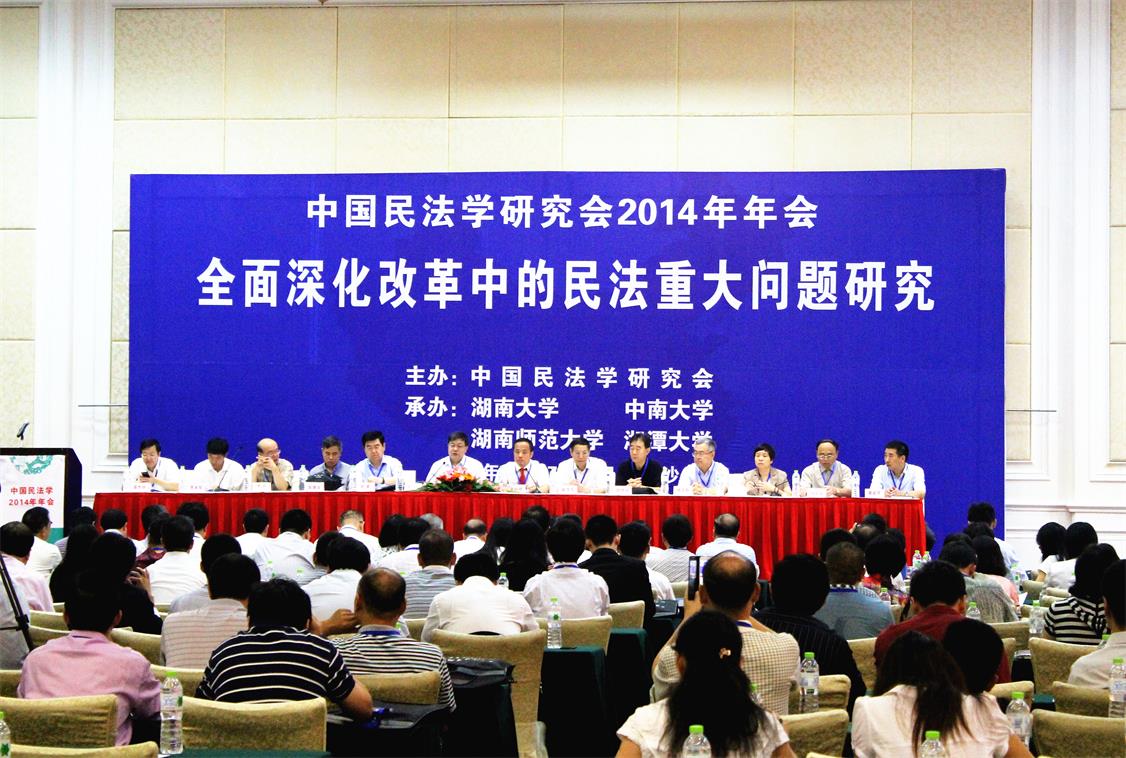 共同承办的中国民法学研究会2014年年会在长沙碧桂园凤凰酒店召开。中国民法学研究会理事、会议主办方和承办方特邀的参会代表等300余位知名教授、学者齐聚星城,共同探讨“全面深化改革中的民法重大问题研究”这一主题。