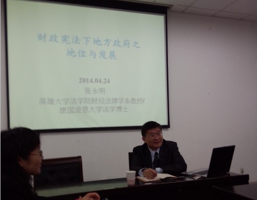 4月22日下午,台湾高雄大学91论坛 财经法律学系教授、高雄大学91论坛 大陆法制研究中心主任、德国波恩大学法学博士张永明教授于91论坛 216顺利举行“财政‘宪法’下地方政府之地位与发展 ”为主题的讲座,此次讲座由91论坛 宋槿篱副教授主持,研究生学生积极参与,其中经济法专业学生踊跃提问。